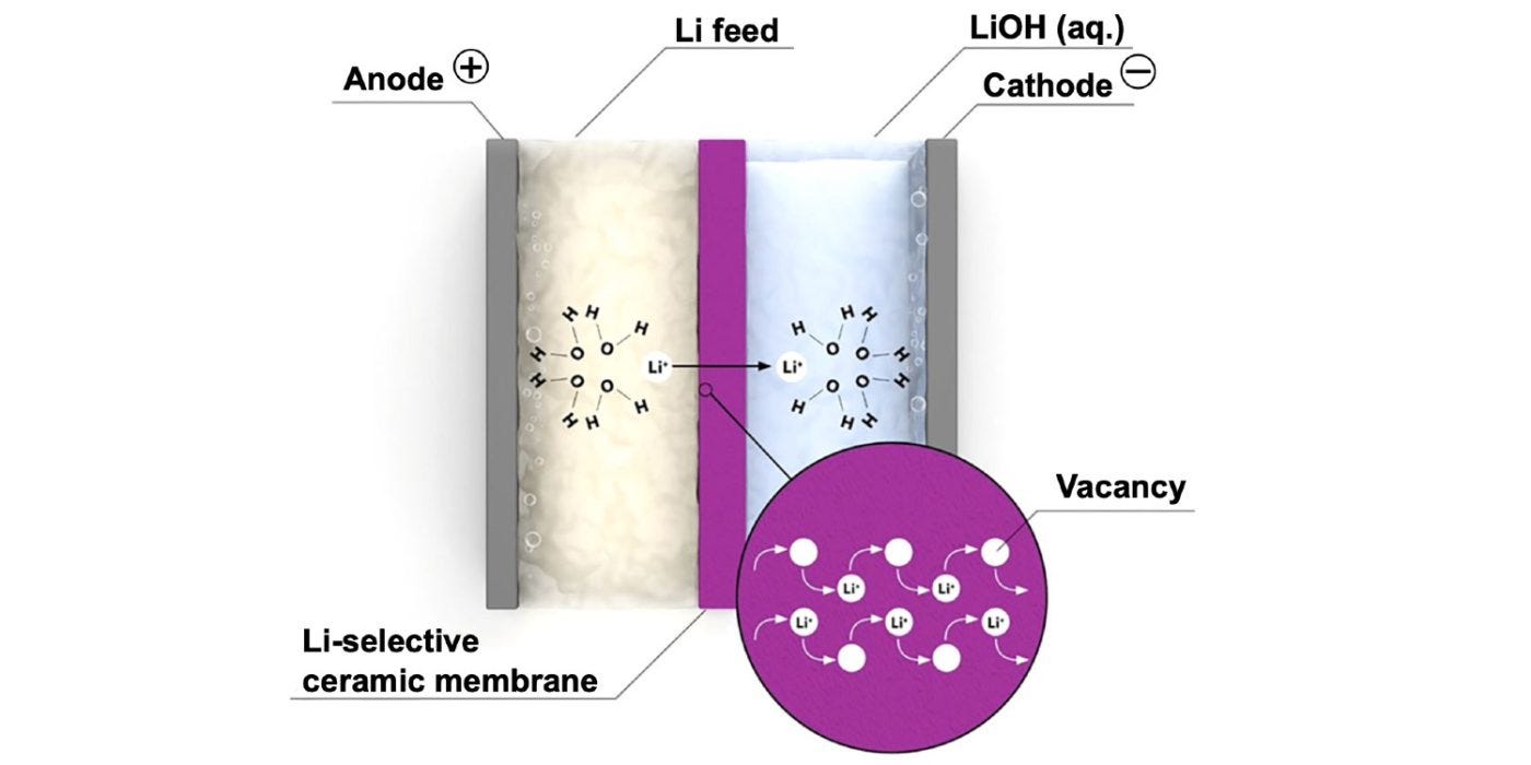 This selective ceramic membrane setup has also been proposed for use in Direct Lithium Extraction (DLE) from continental, geothermal, and oilfield brines (e.g., DOE prize-winning pilots like Pober-Strauss’s lithium-conducting membranes and Xerion’s ceramic redox membranes). A 2024 PNAS study reports a three-chamber electrochemical reactor with a lithium-ion conductive glass-ceramic membrane achieving 97.5% Li⁺ selectivity from simulated brines. These remain largely at pilot or lab scale, with full commercial battery-grade LiOH production from brines using ceramic membranes still under development.