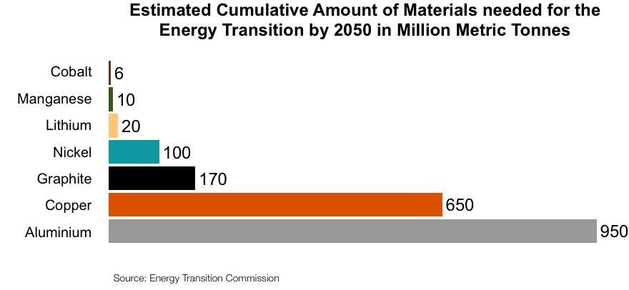 Also unlike with fossil fuels, where the material is destroyed, the minerals needed for the energy transition are not destroyed and if handled correctly metals like lithium and nickel can be recovered and reused almost indefinitely. Waste rock that is removed to access the ore, is also not destroyed rather moved and stored on site, and with the newer generation of mining projects eventually used as back fill in reclamation processes.
