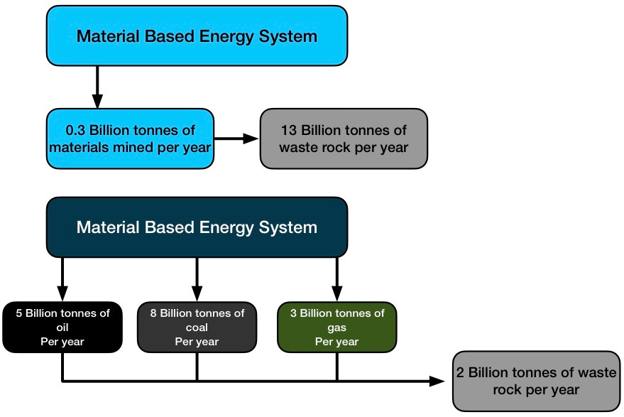 And while there is currently 16 Billion tons of fossil fuels mined and consumed yearly, public perception is vast amounts of land will be destroyed in the mining of materials needed for the energy transition, however additional land use for the energy transition would only be around 0.4–1.1 million km2, comparable to the 0.2–0.4 million km2 used for the fossil fuel energy system.[4]