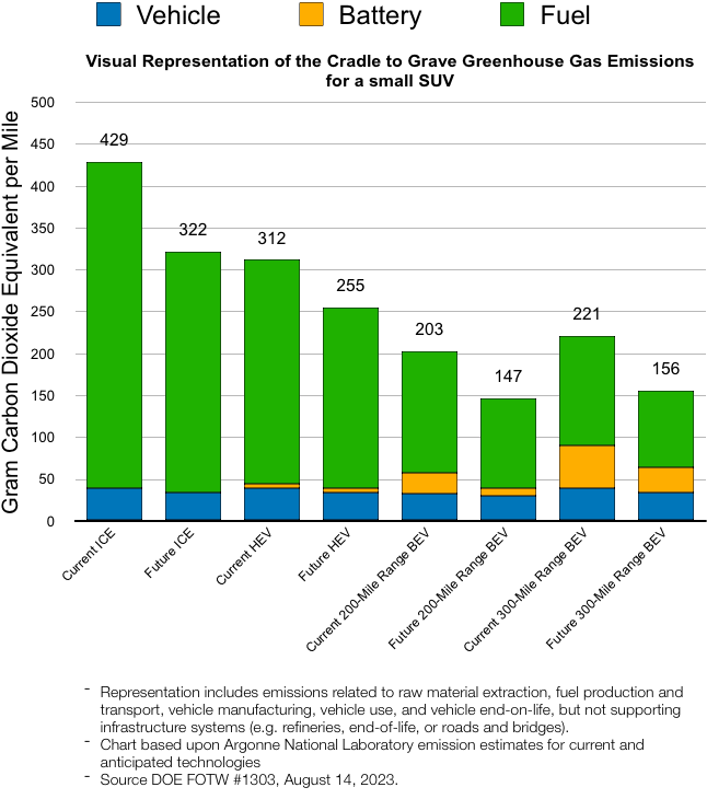 However, it's undeniable that the next three to four generations of EVs will require considerable amounts of fossil fuels for production. The extraction, transport, and processing of the materials needed for a lithium-ion battery produce between 100g CO2/kWh to 200g CO2/kWh depending on the location of both the mine and manufacturing facility. But it is estimated that the amount of CO2/kWh can be reduced by 67% with the use of renewables[5]. As lithium-ion battery chemistries evolve alongside advancements in the technology to mine and produce them, each subsequent generation will progressively reduce its reliance on hydrocarbons as a fuel.