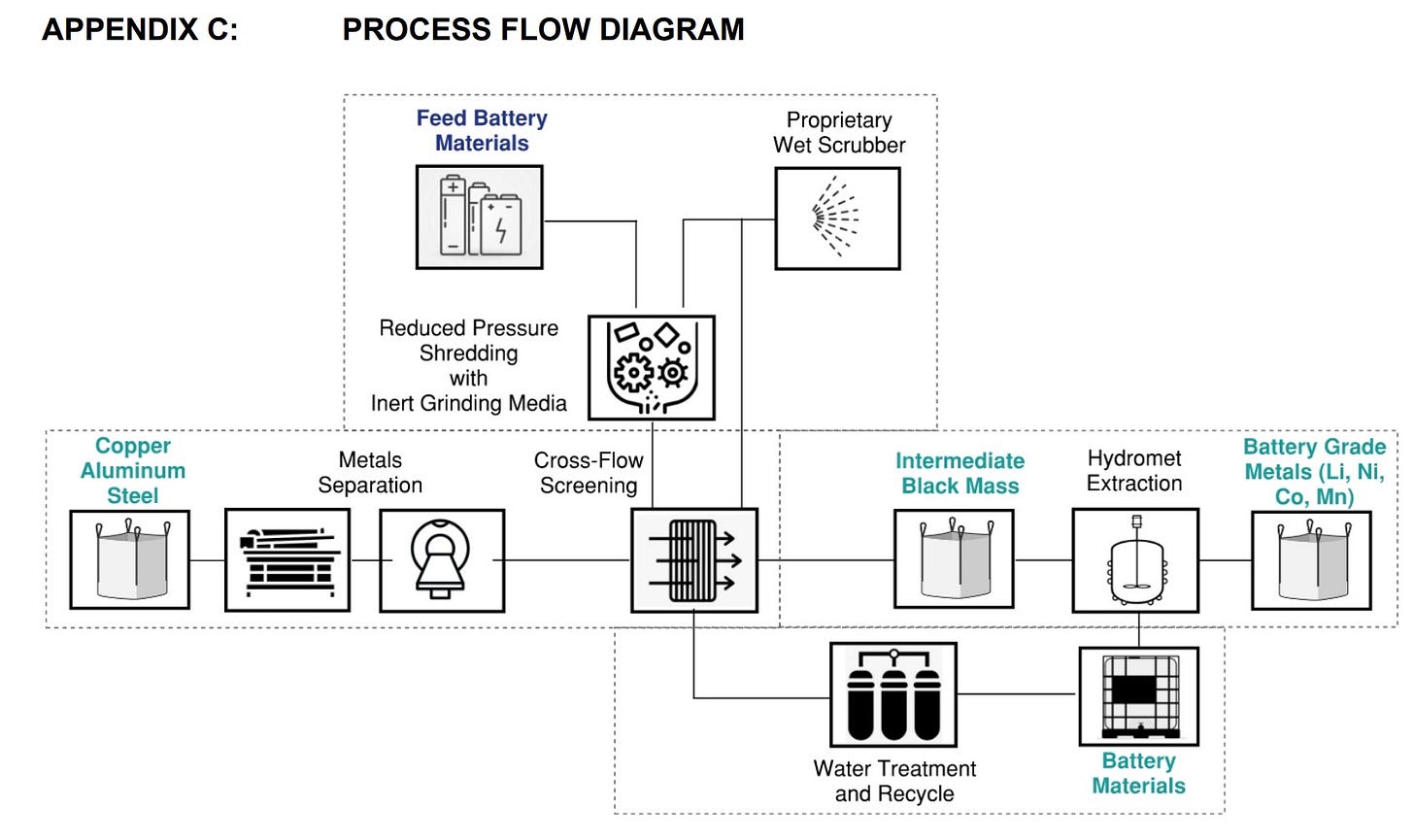 The article specifically says that the process is performed at ambient temperatures, while CyLib will at one point heat the lithium solution (90-100C) during the stage where they create battery grade version. This step can be avoided if the initial black mass is purified beforehand or has been created using a black mass production process that generates very few impurities, like the one ABAT 0.00%↑ American Battery Technology Company developed and deployed at their Nevada facility, this is a process that uses the cell’s own failure mechanisms to, in essence, reverse the manufacturing process. Of course, in ABTC’s process they also utilize a form of early-stage recovery.